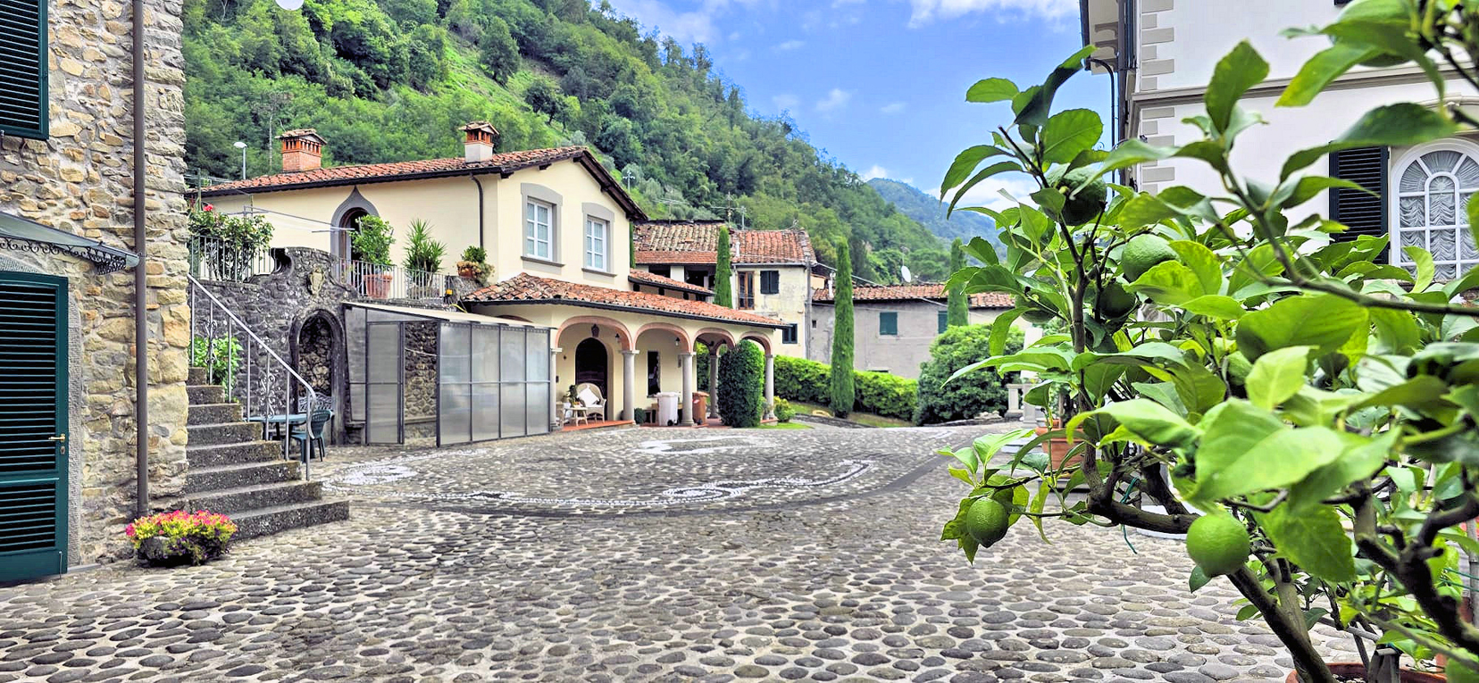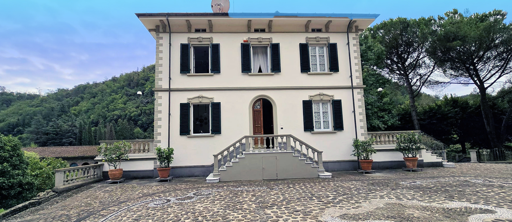 Midt i fredelige og private omgivelser udbydes dette sjældne og elegante ejendomskompleks, bestående af en fornem herskabsvilla i liberty-stil fra begyndelsen af 1900-tallet, et smukt renoveret stenhus samt et historisk limonaia med garage og servicearealer. Ejendommen er smukt indlejret i en fuldstændig indhegnet park på ca. 5.000 m² med automatisk vandingsanlæg fra egen kilde, tennisbane og mulighed for etablering af swimmingpool.